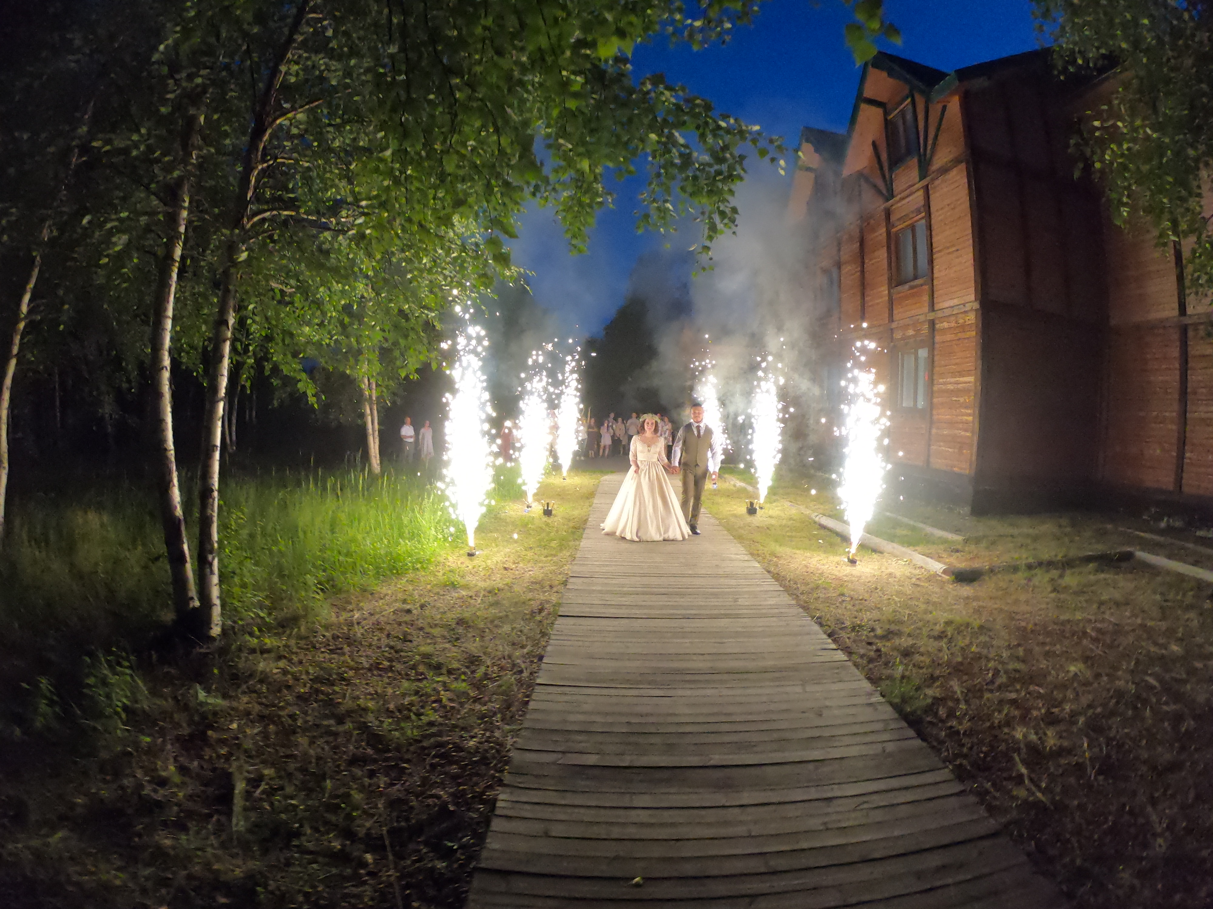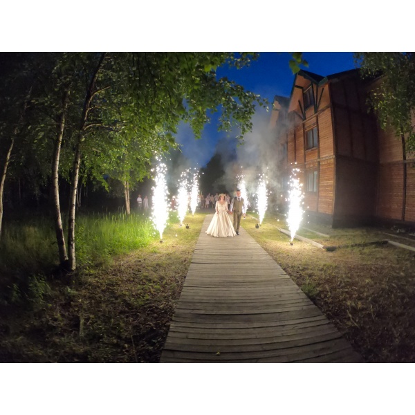 Заказ дорожки из холодных фонтанов — одна из самых популярных услуг на нашем сайте. Сделает встречу, или проводы молодоженов по-настоящему фееричным зрелищем. Пиротехника устанавливается таким образом, чтобы создать искрящийся коридор, по которому жених и невеста пройдут рука об руку под восторженные возгласы гостей.